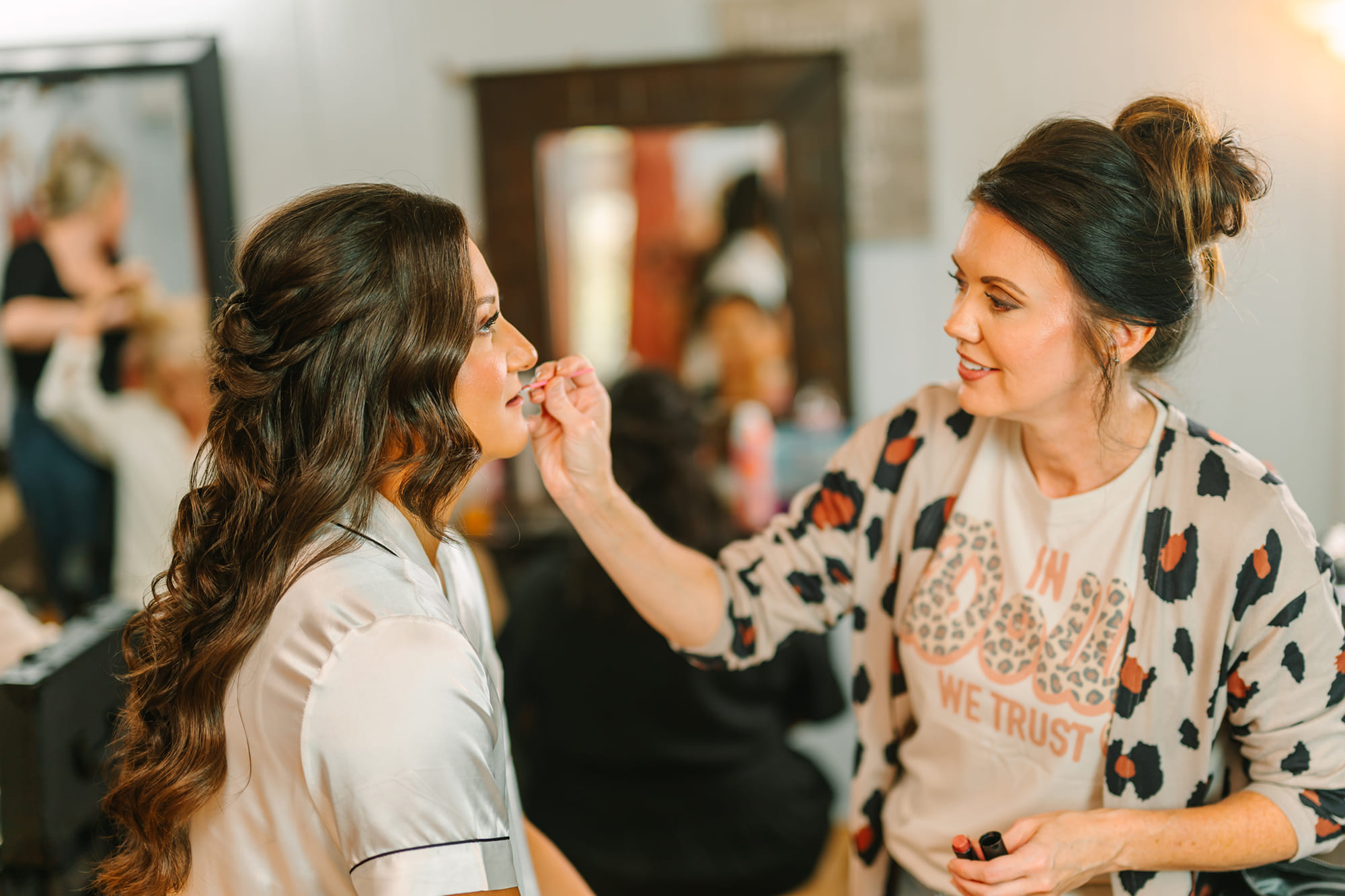 The suite features a cozy full bedroom, perfect for overnight stays before the big day. A spacious full bathroom ensures plenty of room to get ready, while the dedicated hair and makeup area with three styling stations makes getting glam easy and fun for everyone.